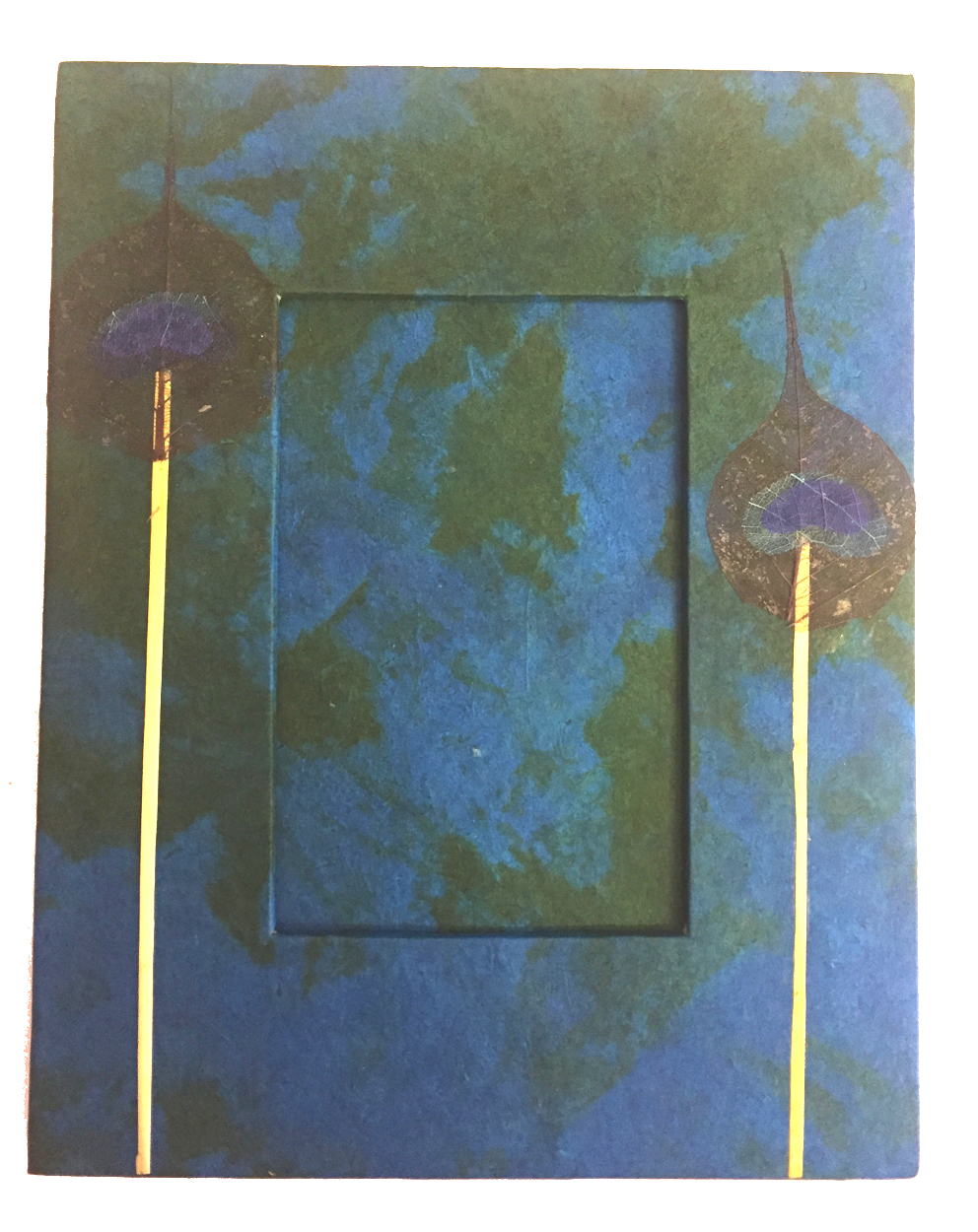 The 'peacock feather' is actually a leaf from the pipal tree, a sacred tree in India and Nepal, whose branches are reputedly home to 10,000 gods. They are hand made in the Kathmandu Valley in Nepal, the paper is made from a herb called Lokta that grows high in the Himalaya.