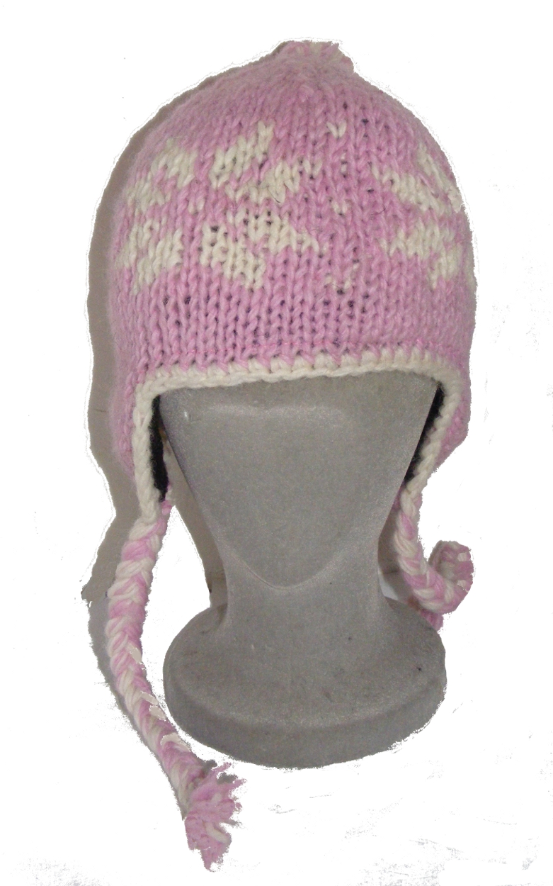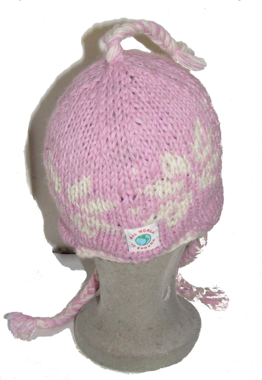 Tags: hand knit, wool, earflap, hat, children's, pink, bright colours, tibetan, nepal, kathmandu