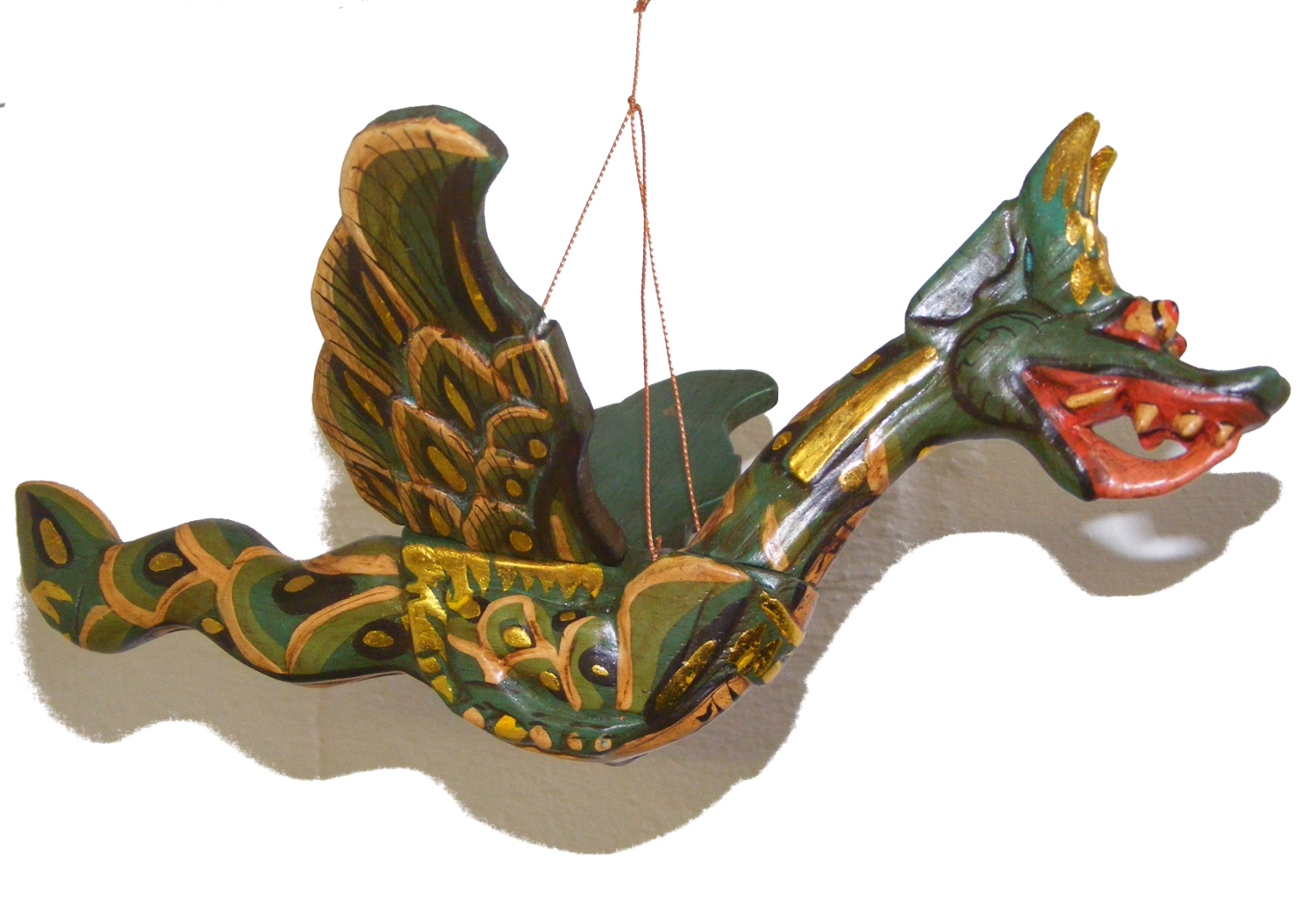 The Barong is a lion-like creature and character in the mythology of Bali. He is the king of the spirits, leader of the hosts of good, and enemy of Rangda, the demon queen and mother of all spirit guarders in the mythological traditions of Bali.Our Barong are hand carved from sustainably grown albesia wood. Albesia wood is an incredible resource, in the tropics trees can grow to a height of 70 ft and a girth of 3 ft within 4 years of germination. It is soft, light and easy to carve and as it grows so quickly it is very sustainable.Our Barongs are hand carved before being painted by hand then the golden bits are gilded with a very fine gold leaf. As they are hand carved and hand painted each chicken is slightly different, so you are getting a unique piece of art!We have two sizes of Barong, Mama and Baby. Our Baby Barong measures approx 25 cm wide by 17 cm wide and our Mama Barong approx 47 cm by 33 cm. Why not get one of each?Hand Carved Balinese Green and Gold Barong ( Mytholgical Dragon )