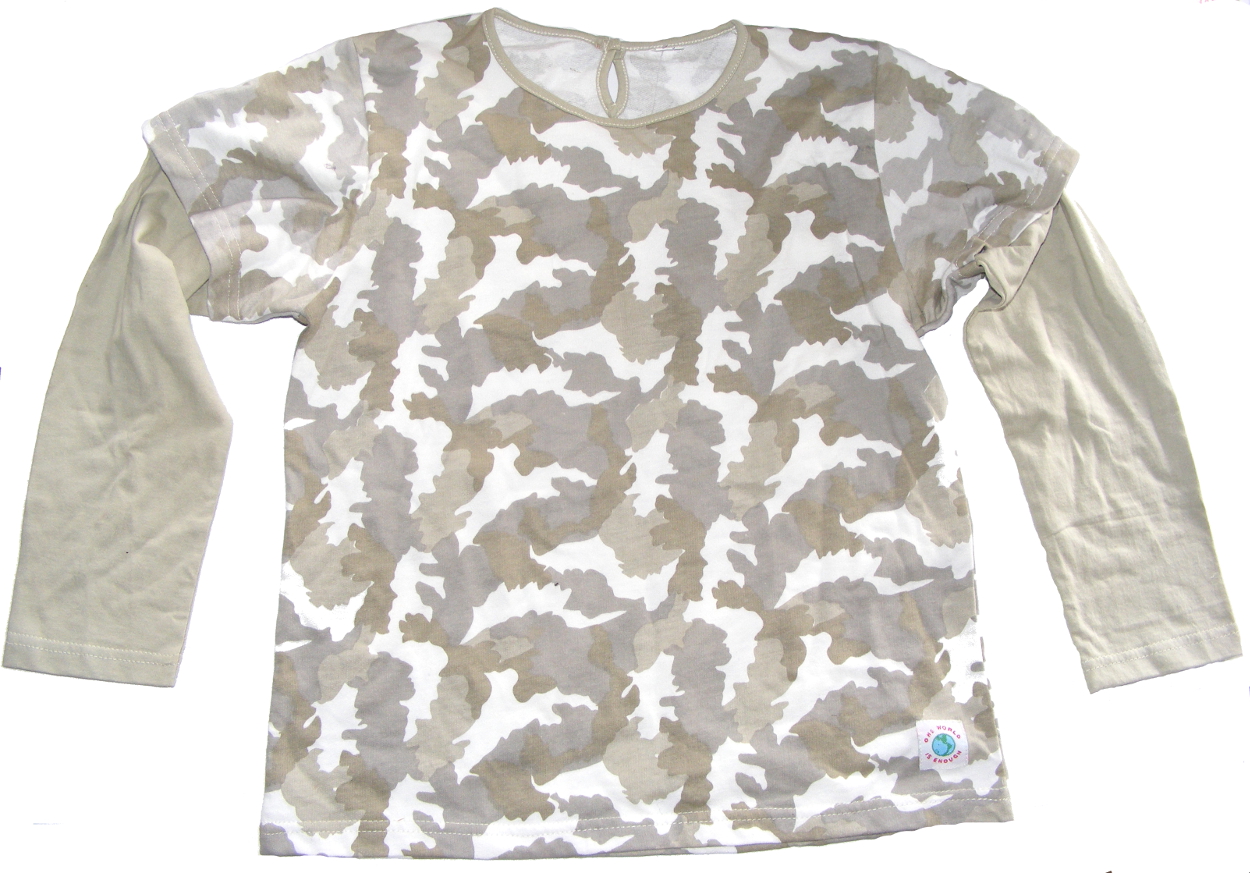 • Kids White Grey Green Camouflage Long Sleeve T Shirt Ages 5 - 10 - Fair Trade