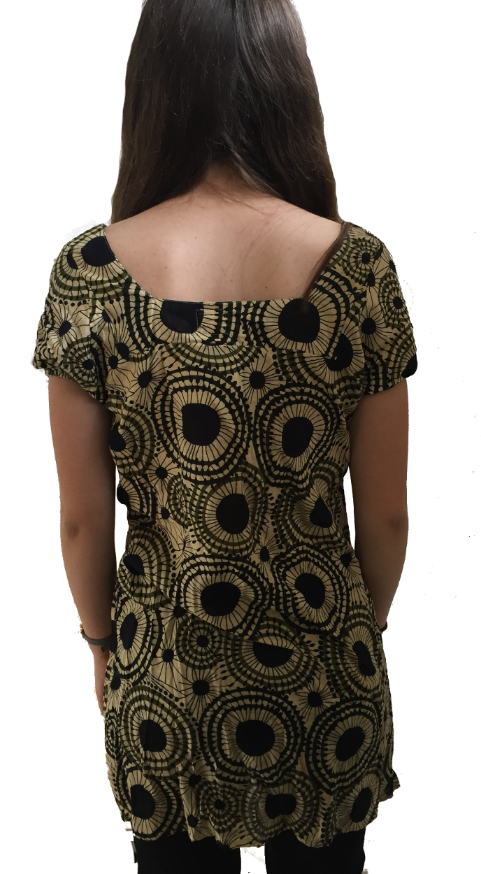 They features a fashionable square neckline and cap sleeve which covers the shoulder and top of the arm. Our Lulu Top comes in three exciting, vibrant patterns; Sand, Olive & Ice Blue and come in sizes 8-10 upto 14 - 16.