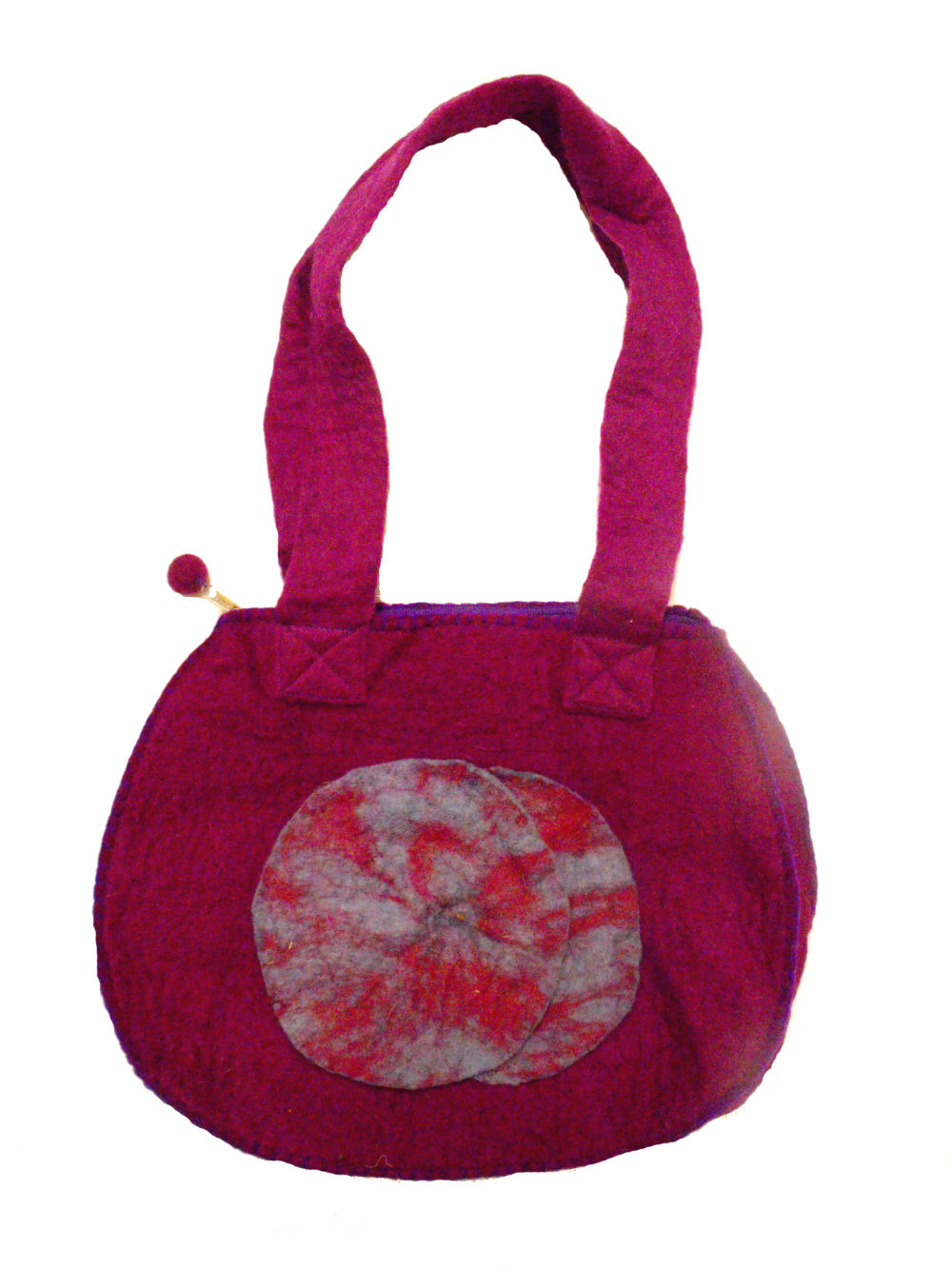 Fair Trade Hand Made Lovely Tactile Double Circle Variegated Felt Hand Bag - Purple